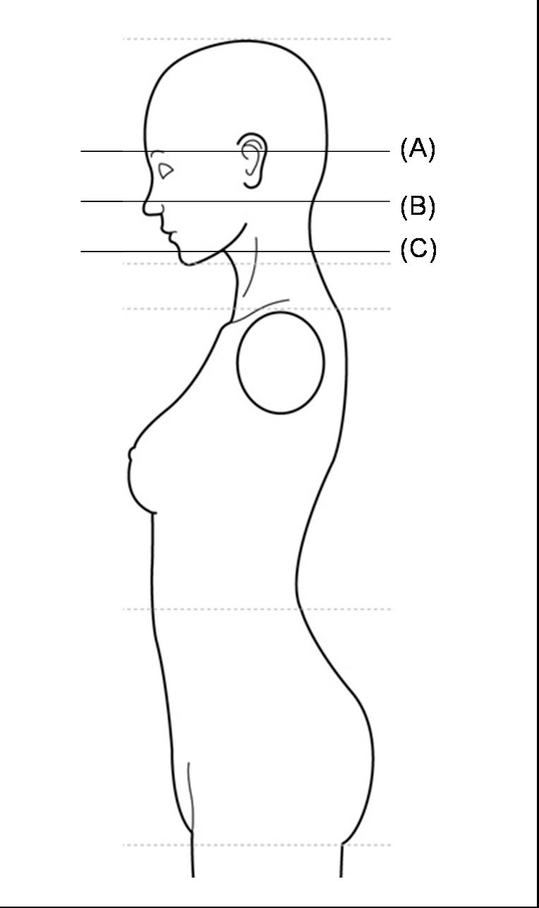 □(A)目の下辺り □(B)鼻の下辺り □(C)口の辺り![]()
