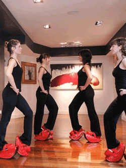 特別にデザインされた靴を履き、身体の中心を軸として前後に揺れる運動から構成され、緩や