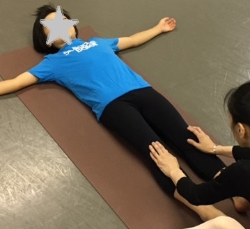 膝を伸ばすというのは、具体的にどういうことかを伝え、どういう筋肉が動いているかを自分の手で確認し、膝を伸ばす練習をしてみました。