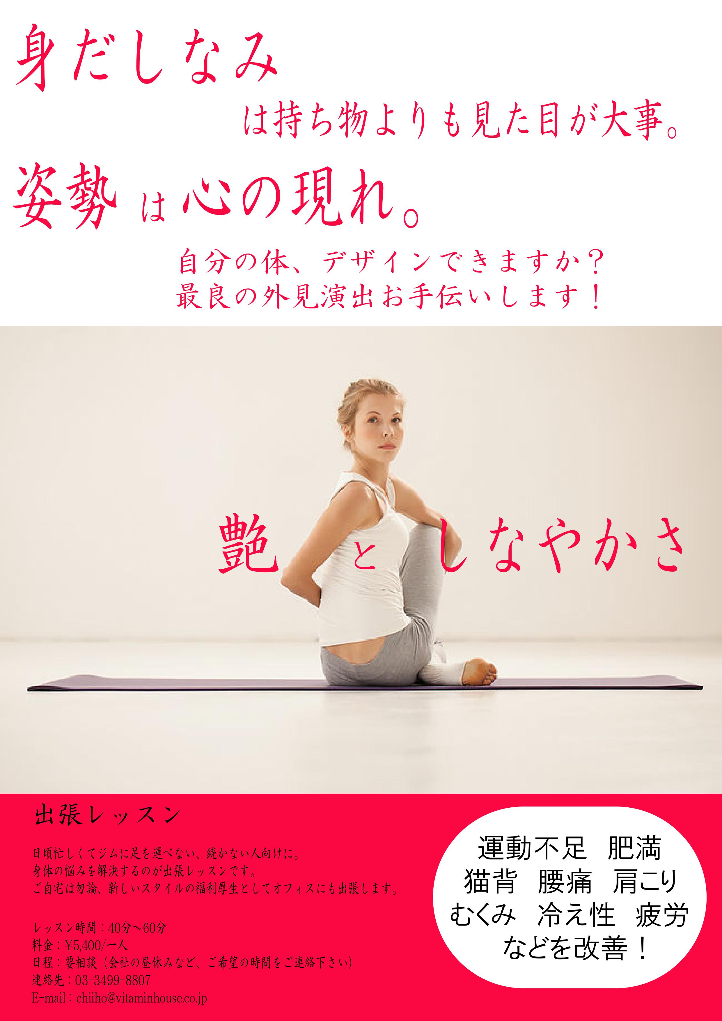 姿勢を良くして、相手に好印象を与え、人間関係も仕事も、そして人生も円滑に進められるように。そんなお手伝いが出来れば嬉しいです。